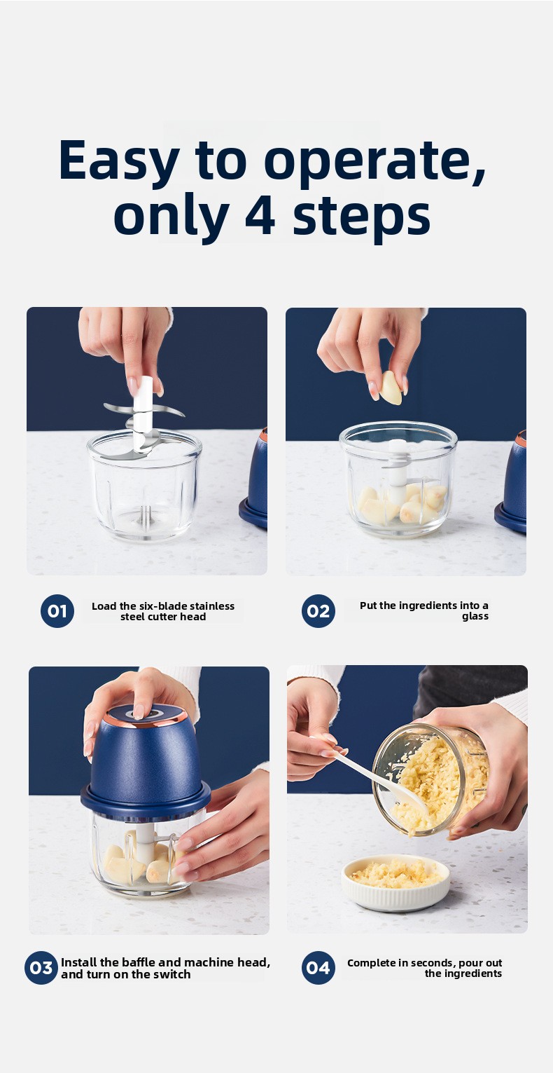 Electric Operation: Powered operation for effortless garlic crushing and food processing